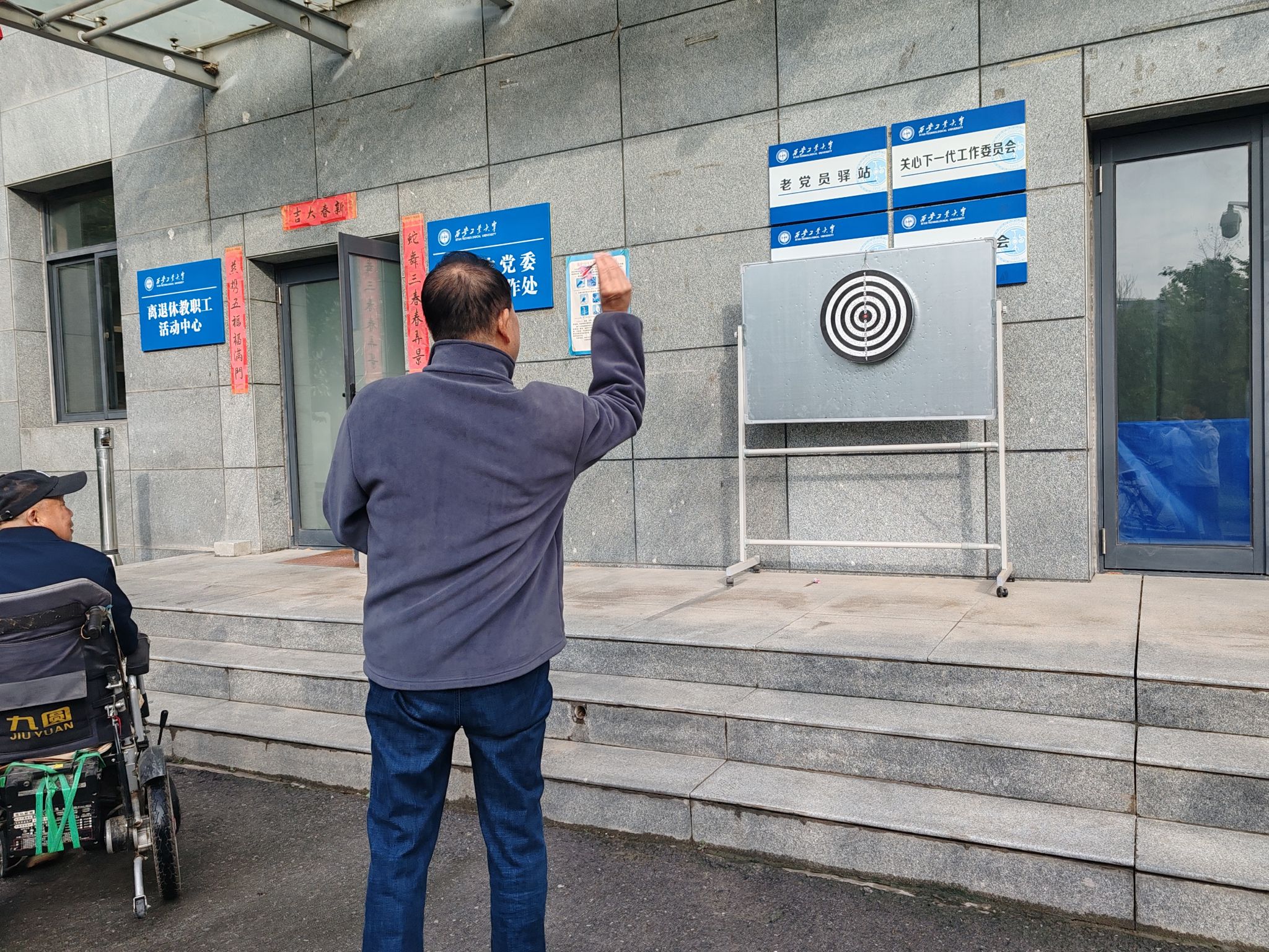本次活动采用线下线上相结合的方式开展。线下三项趣味活动投飞镖、套圈圈、一击中的在学校三个家属区的离退休教职工活动室同时开展,400余名老同志参加了本次线下活动,经过3天的角逐,选拨出了三项趣味活动成绩优异的36名老同志进行决赛。200余名老同志参加了线上健步行活动。10月23日,趣味三项活动决赛在东家属区老年活动室进行,老同志们精神矍铄、身手矫健,活动过程欢声笑语、精彩纷呈。最终,三项趣味活动决赛产生了一等奖3名、二等奖6名、三等奖9名。